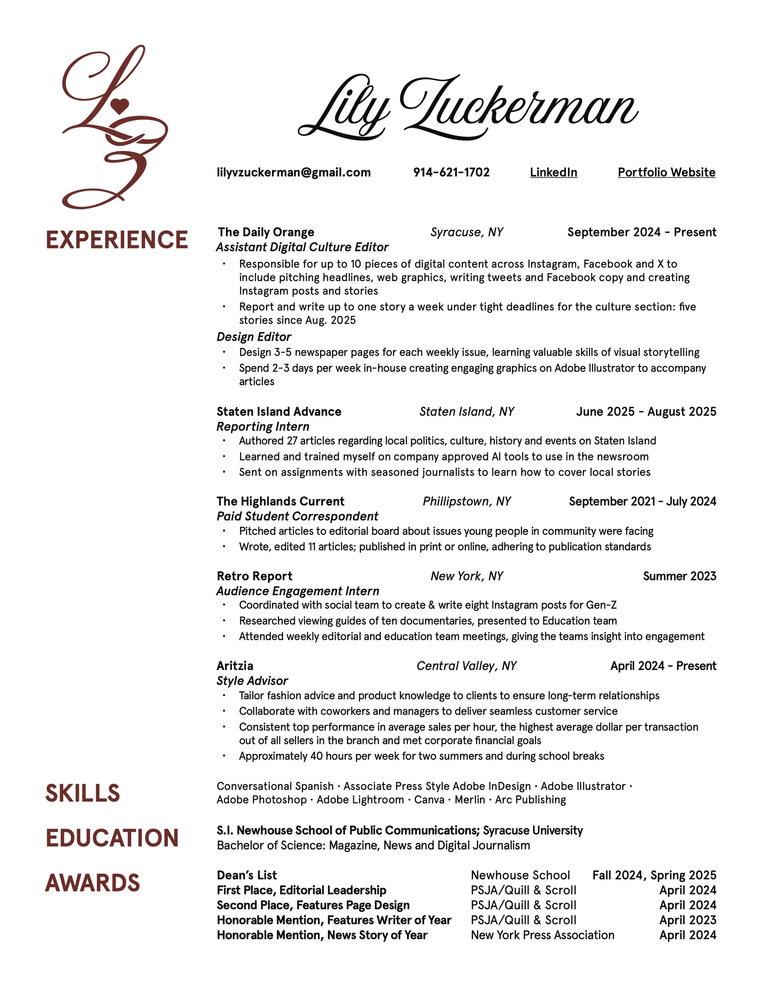 PROJECT ONE Created personal logo and branding on Adobe Illustrator. Used logo and brand identity on Adobe InDesign to design my resume.